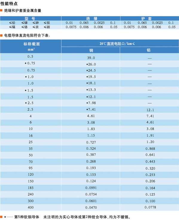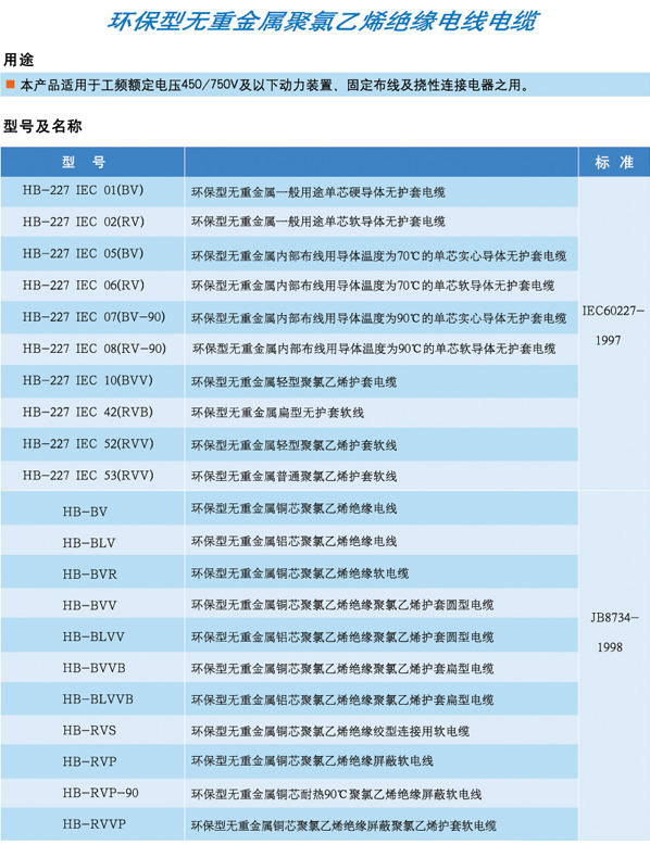 环保型无重金属聚氯乙烯绝缘电线电缆